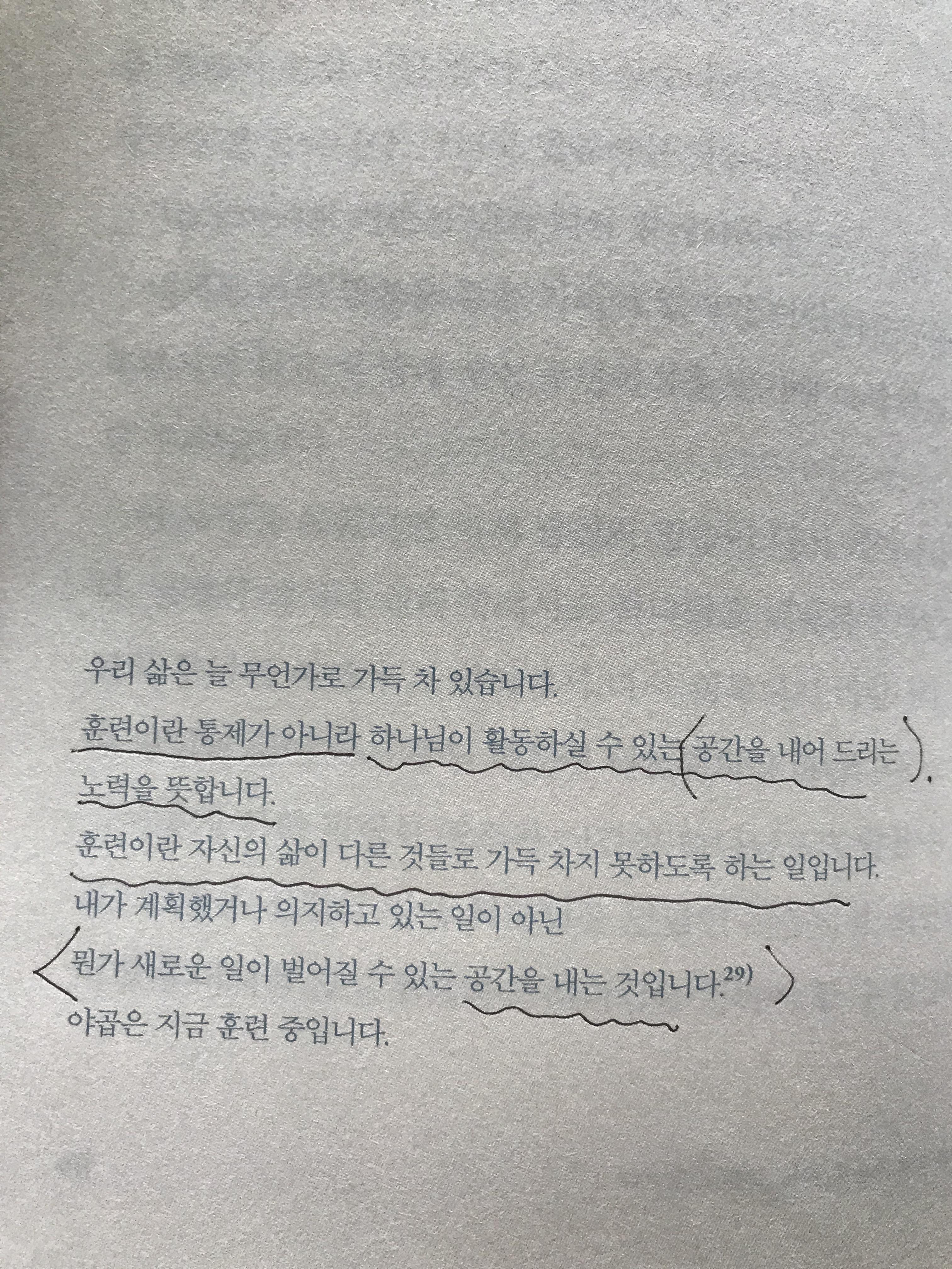 훈련이란 통제가 아니라 하나님이 활동하실 수 있는 공간을 내어 드리는 노력을 뜻합니다.